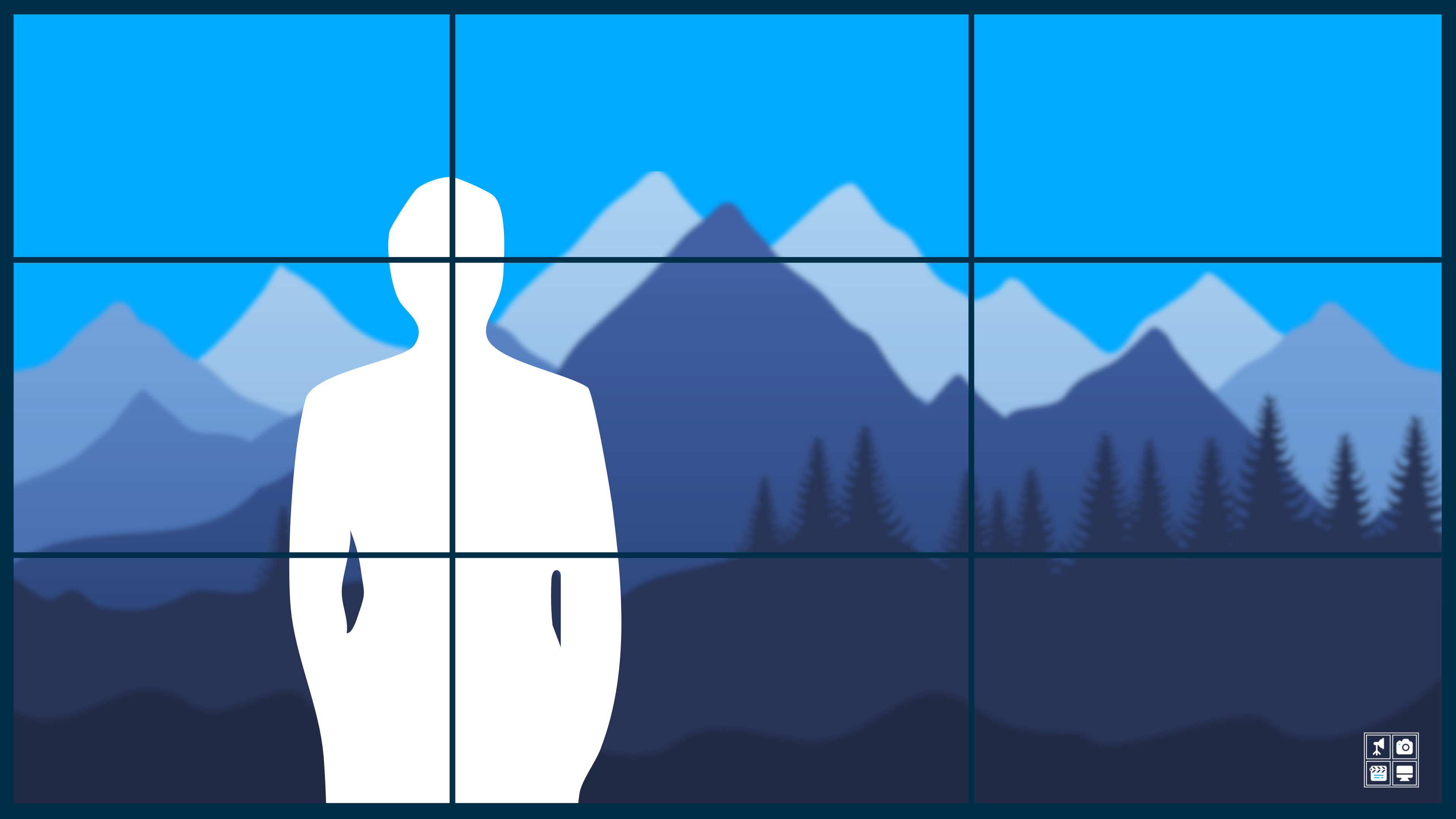The Rule of Thirds is a helpful tool designed to create balance while suggesting alternative compositions that are more interesting than centering everything on screen. In the graphic above, you’ll feel the weight of the dark mountains toward the bottom juxtaposed to the light sky above. Then we’ll find our subject almost unexpectedly standing to the left which provides a better perspective to what they are staring at. Rather than staring at the back of a person, we feel compelled to “see what they see” as the trees are revealed on the hillside.